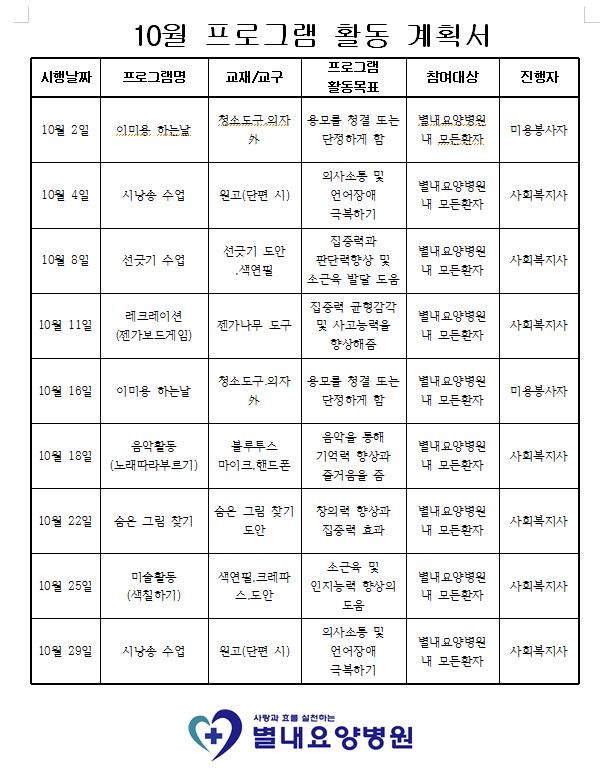 10월 프로그램활동 계획표