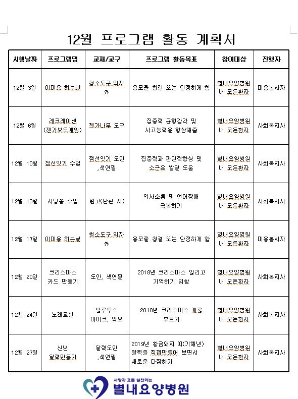 12월 프로그램활동 계획서