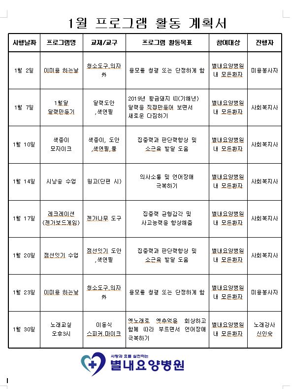 2019년 1월 프로그램 계획표