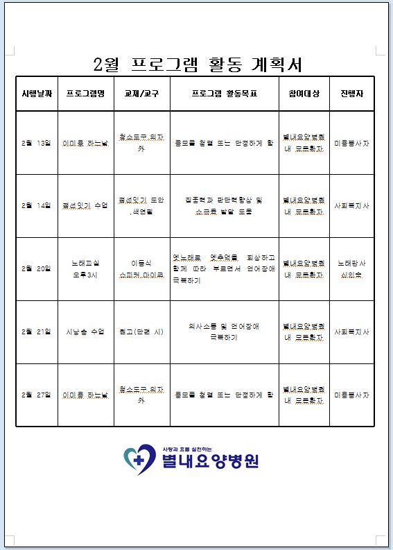 2월 프로그램 활동계획표