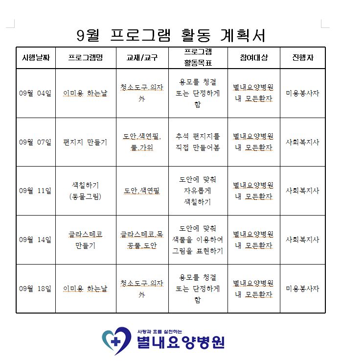 *상기 내용은 병원 일정에 따라 변동될 수 있습니다.