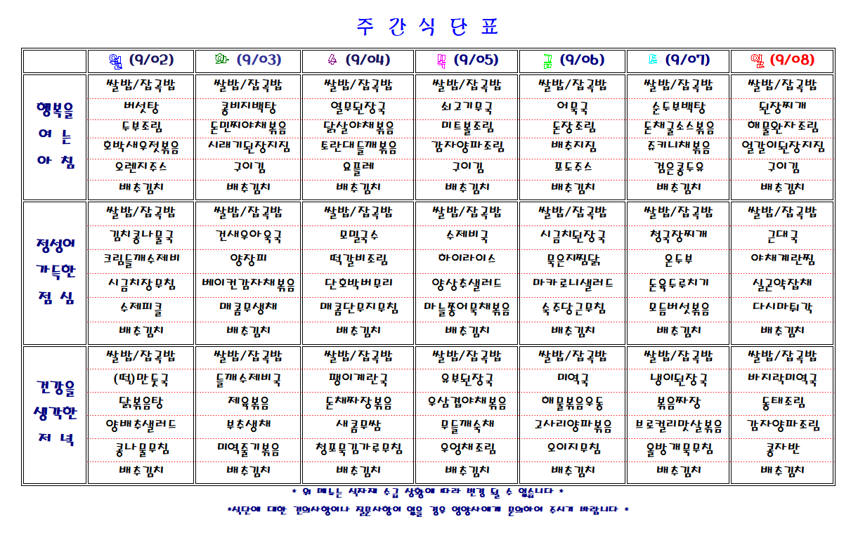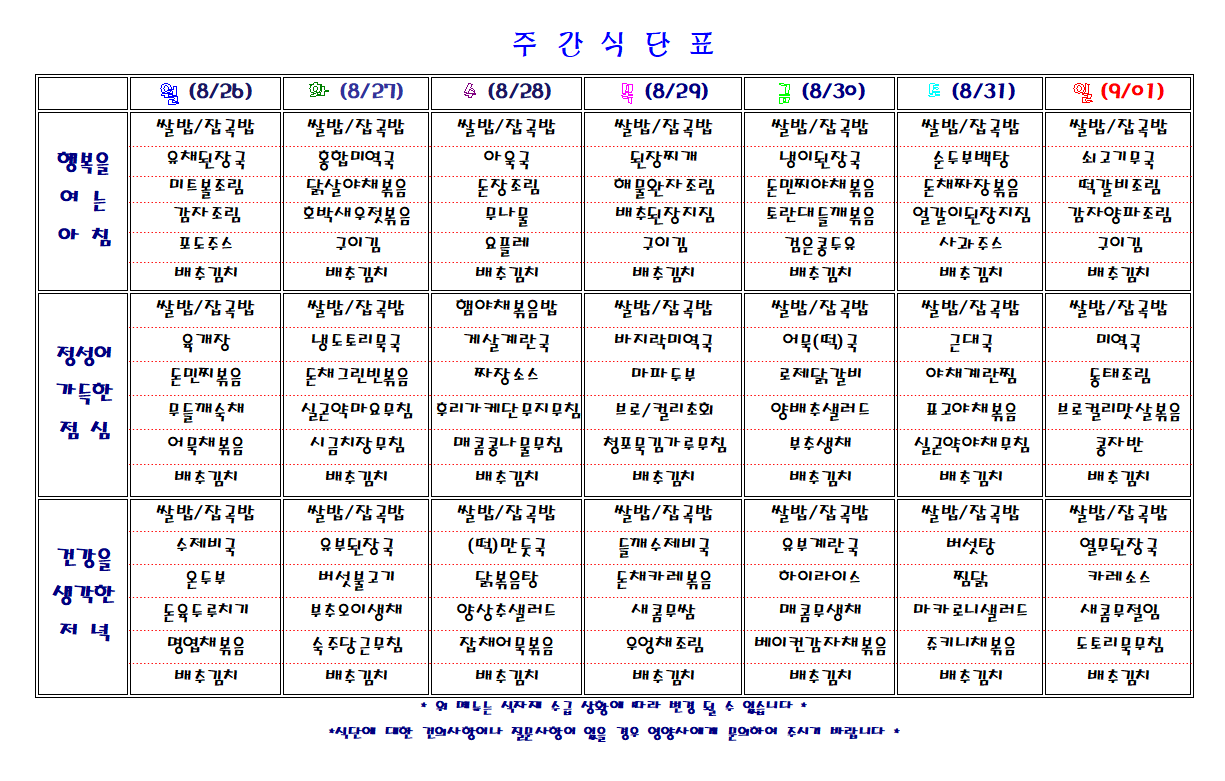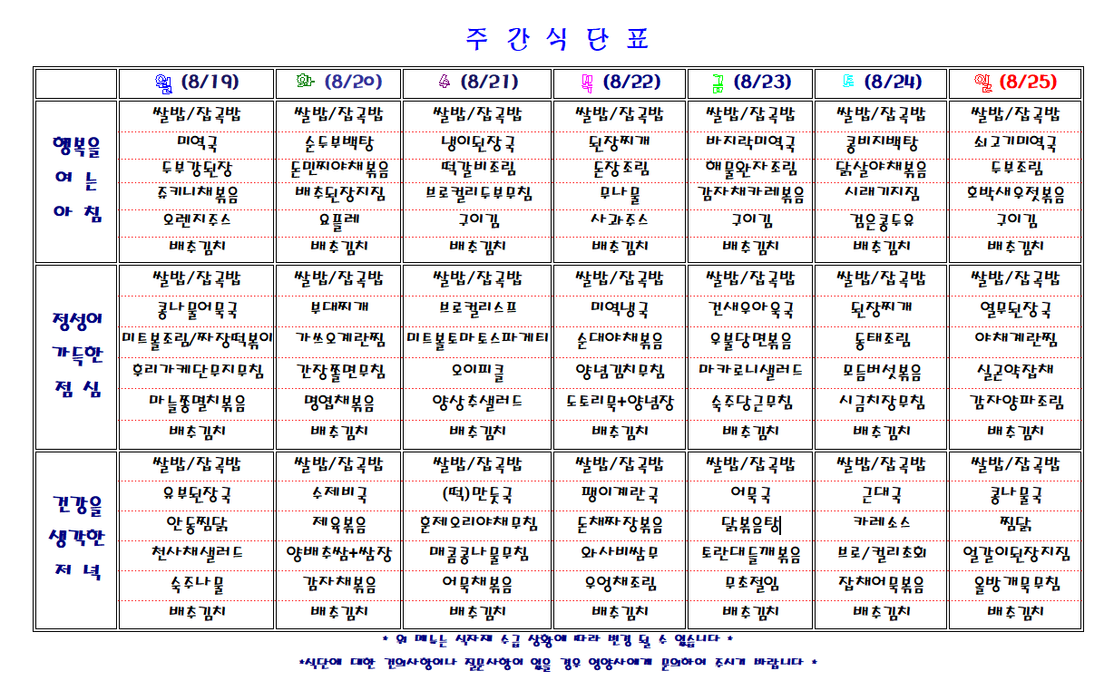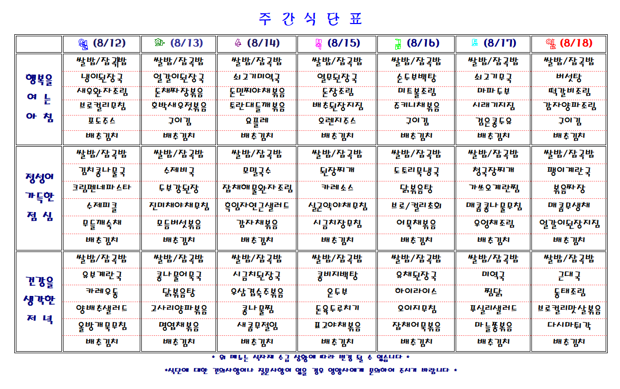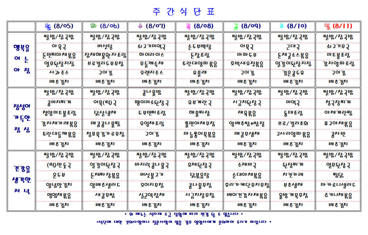 주간 식단표