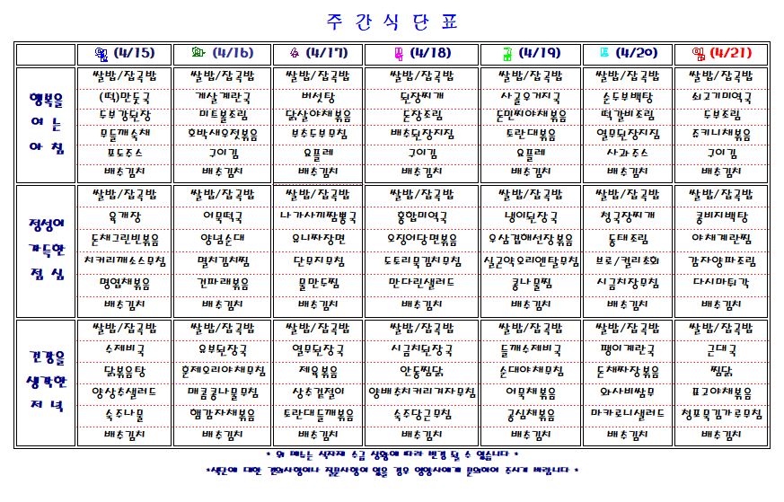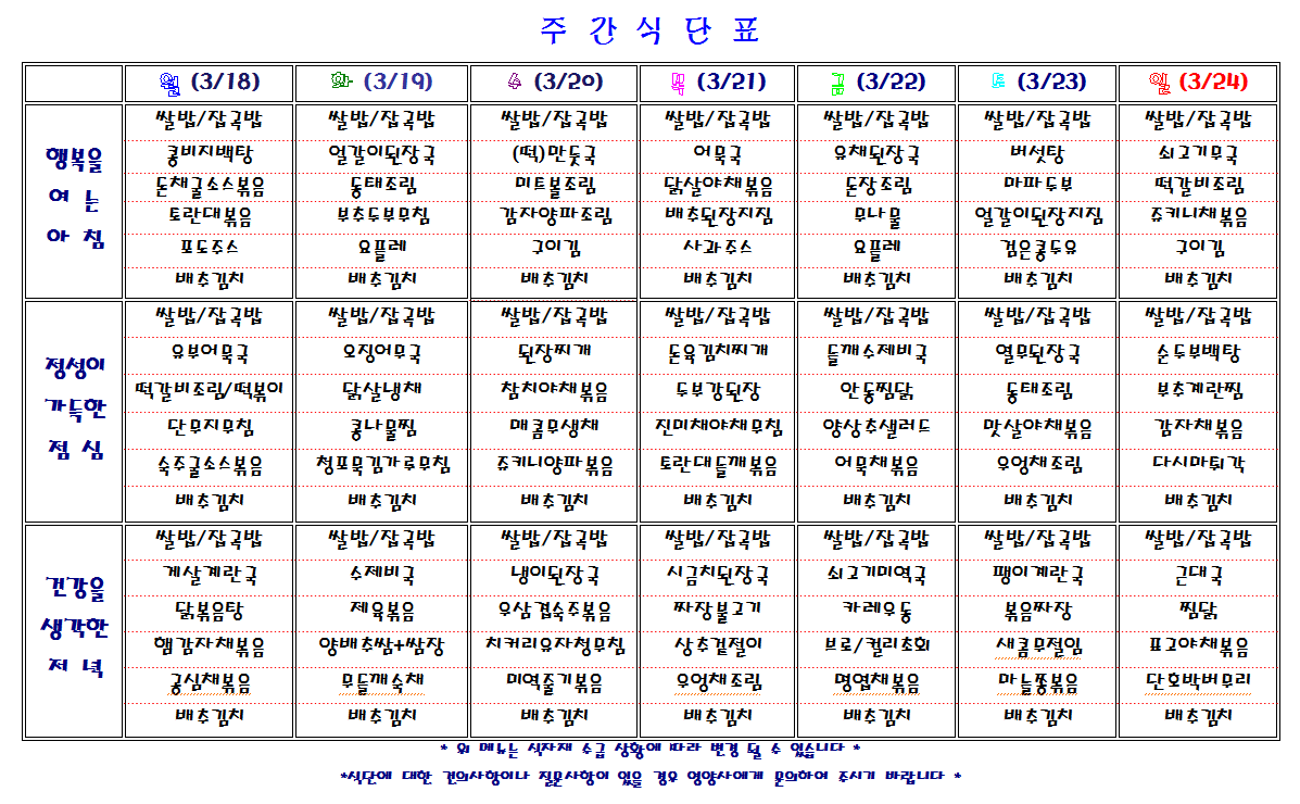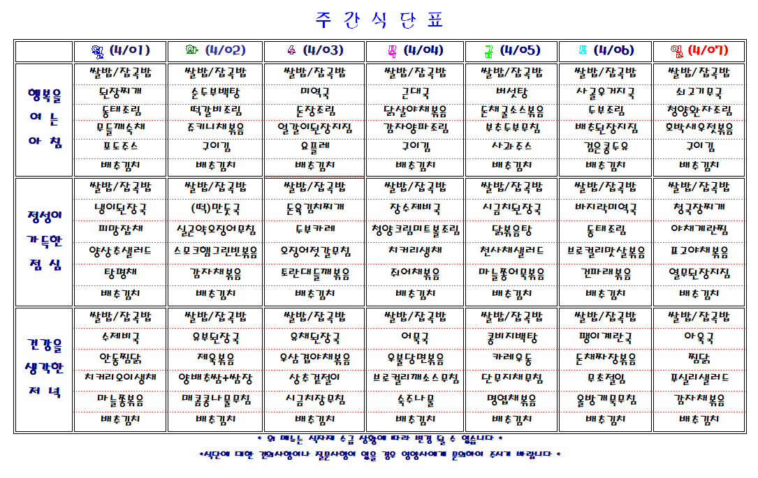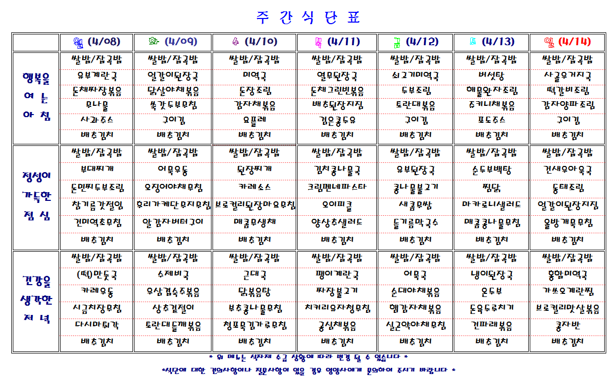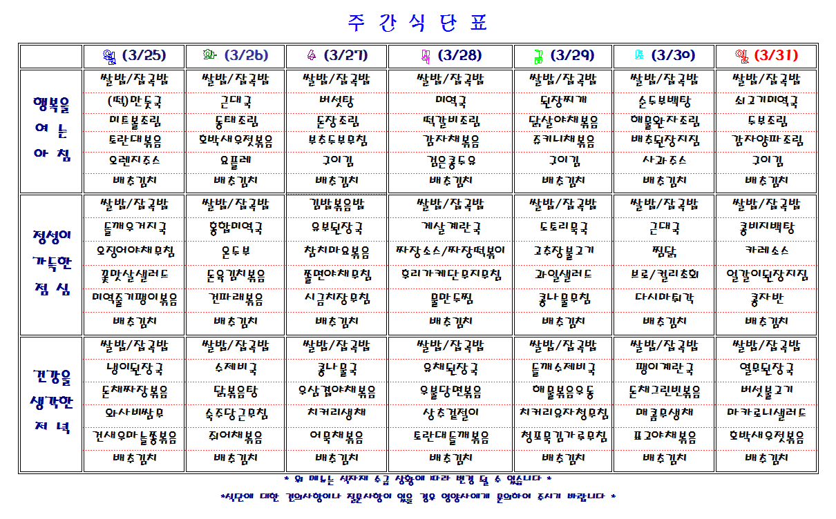 주간 식단표