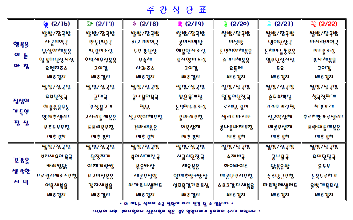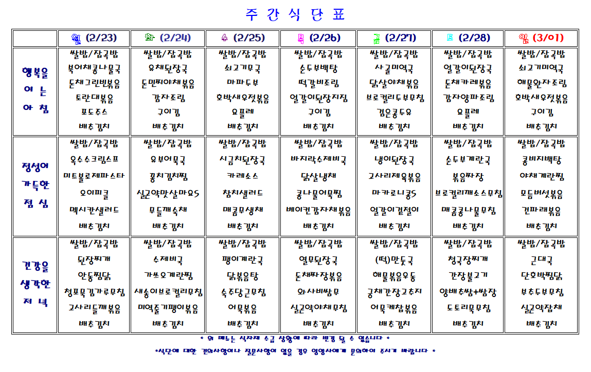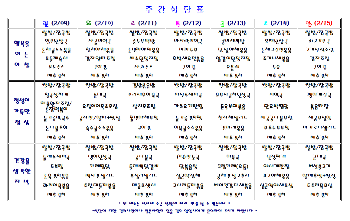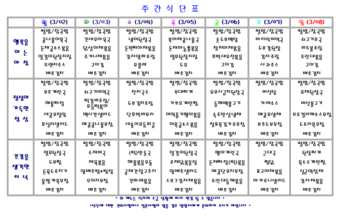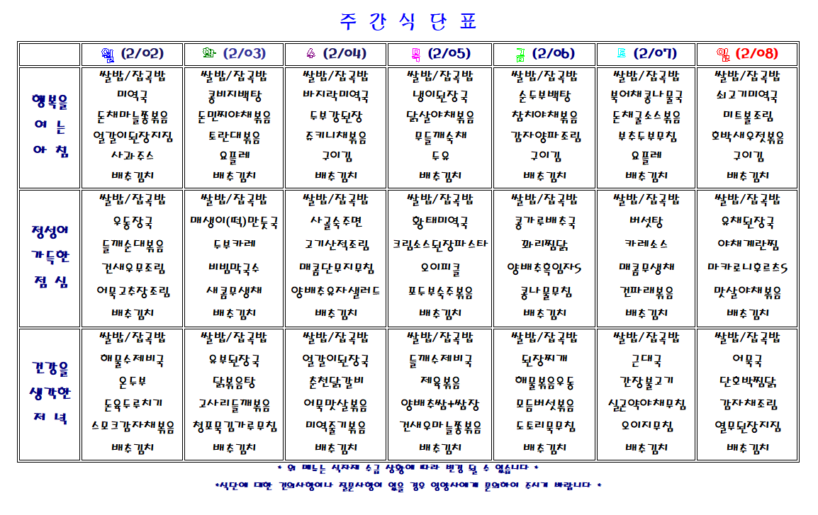 주간 식단표