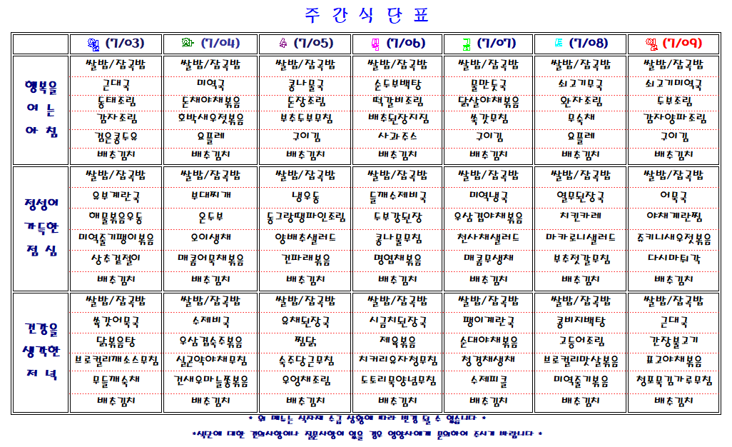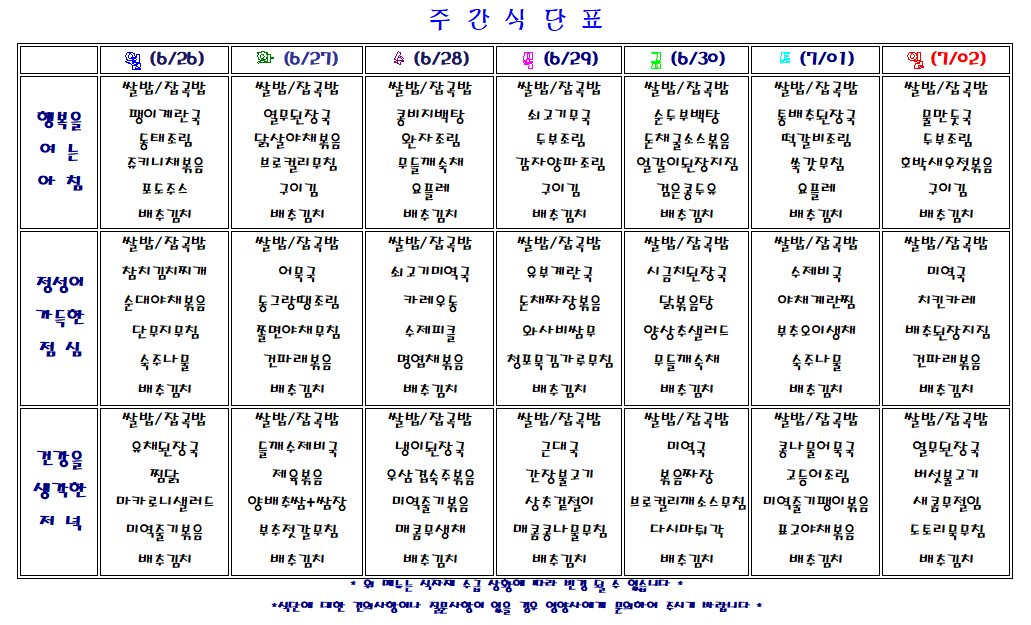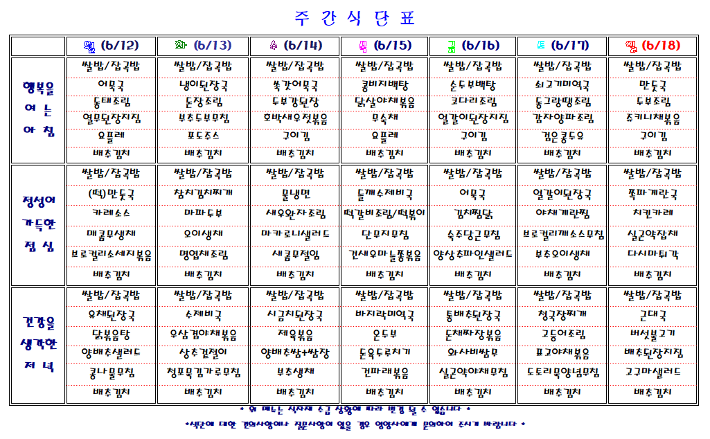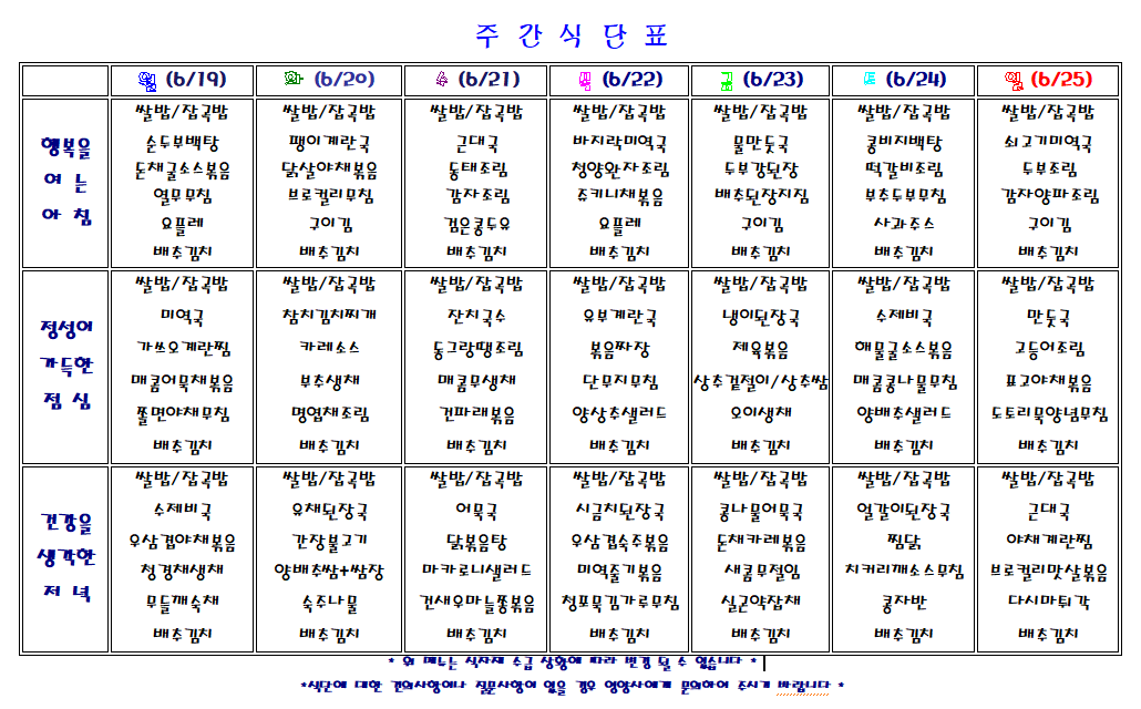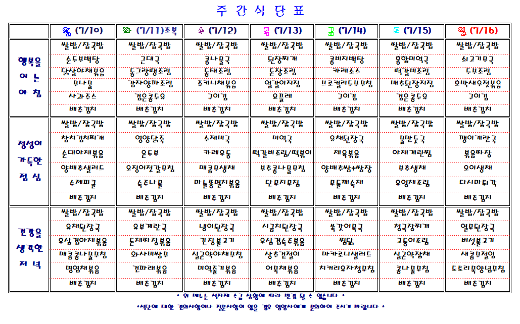 주간 식단표