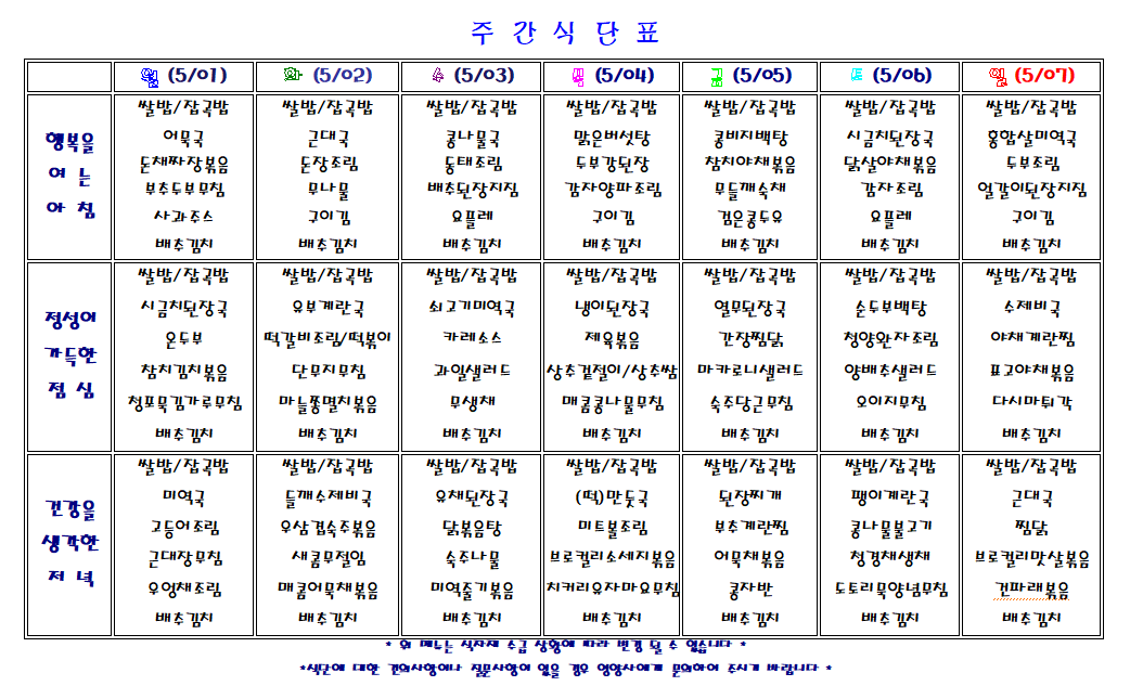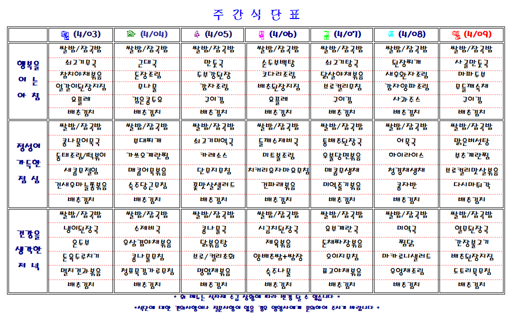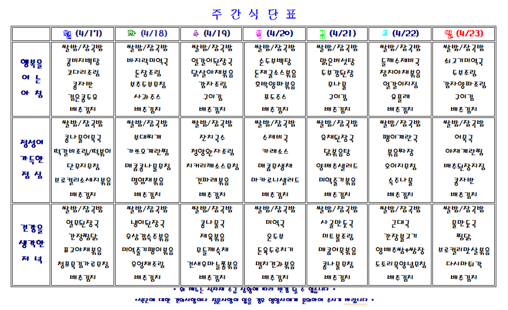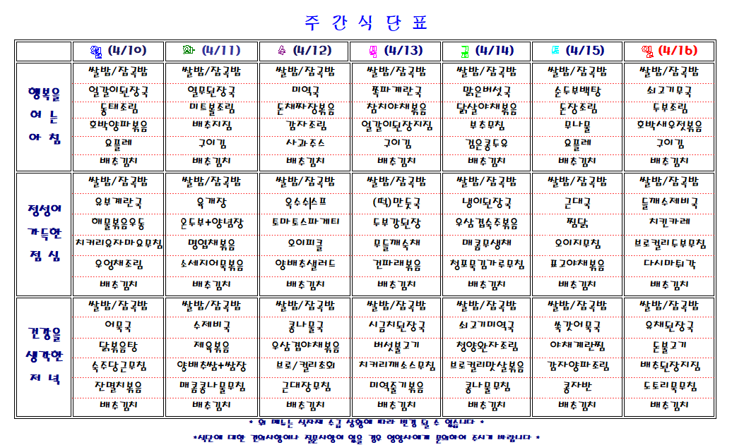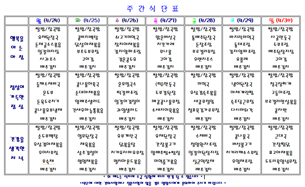 주간 식단표