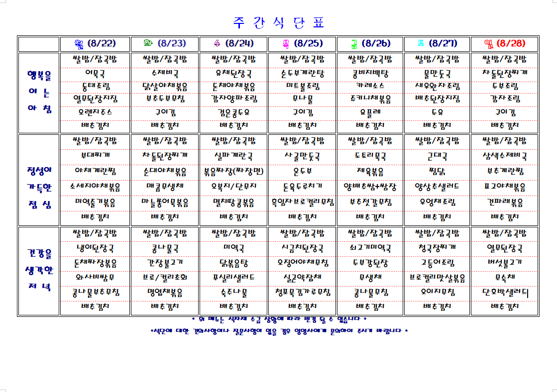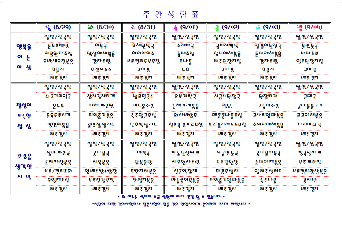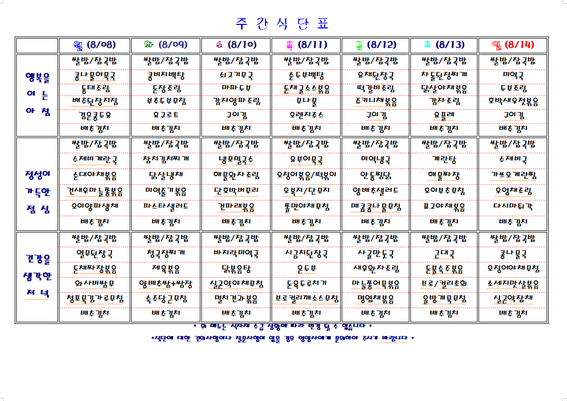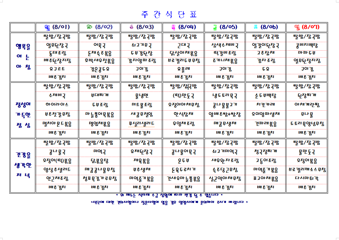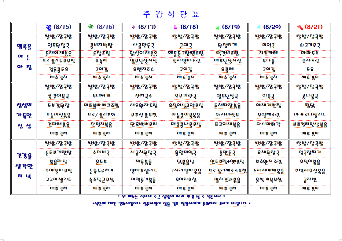 주간 식단표