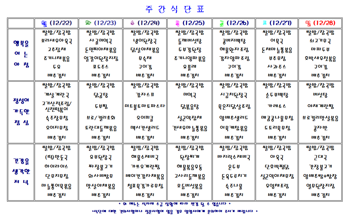 주간 식단표
