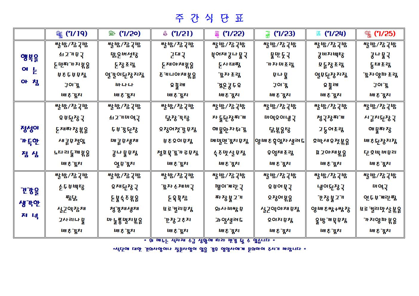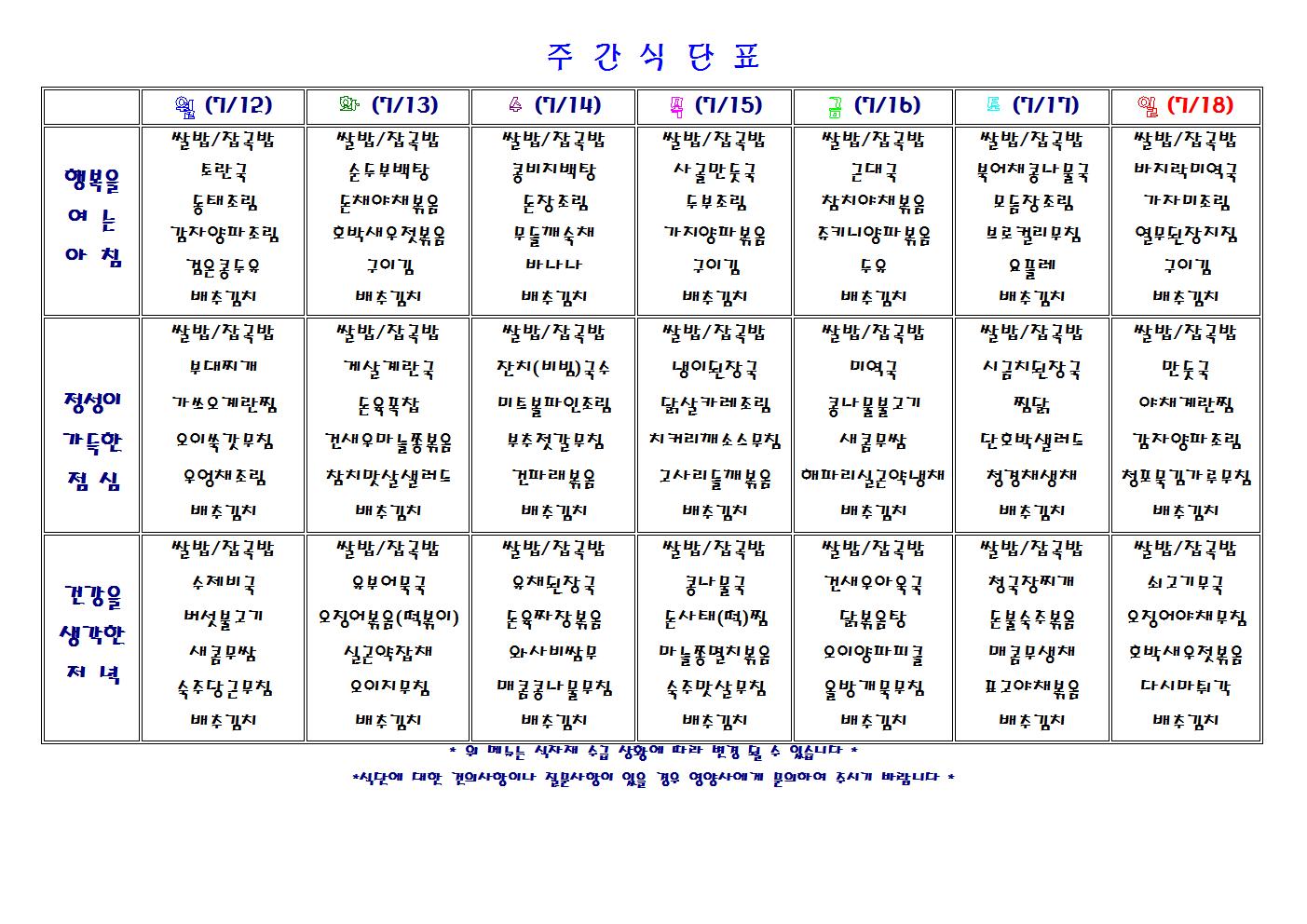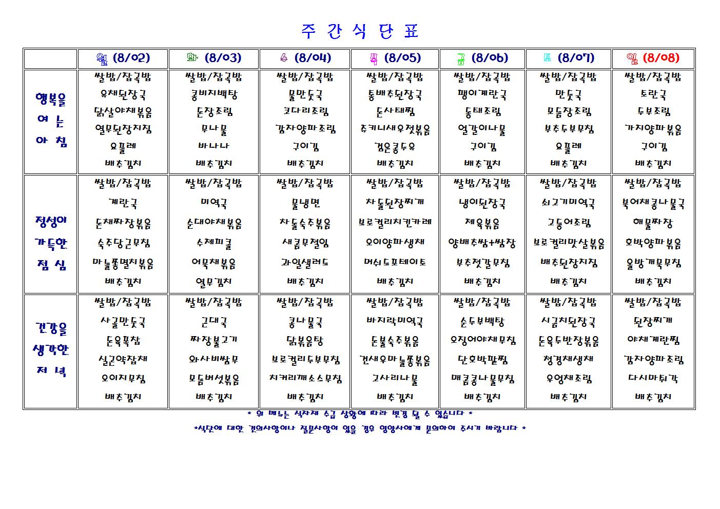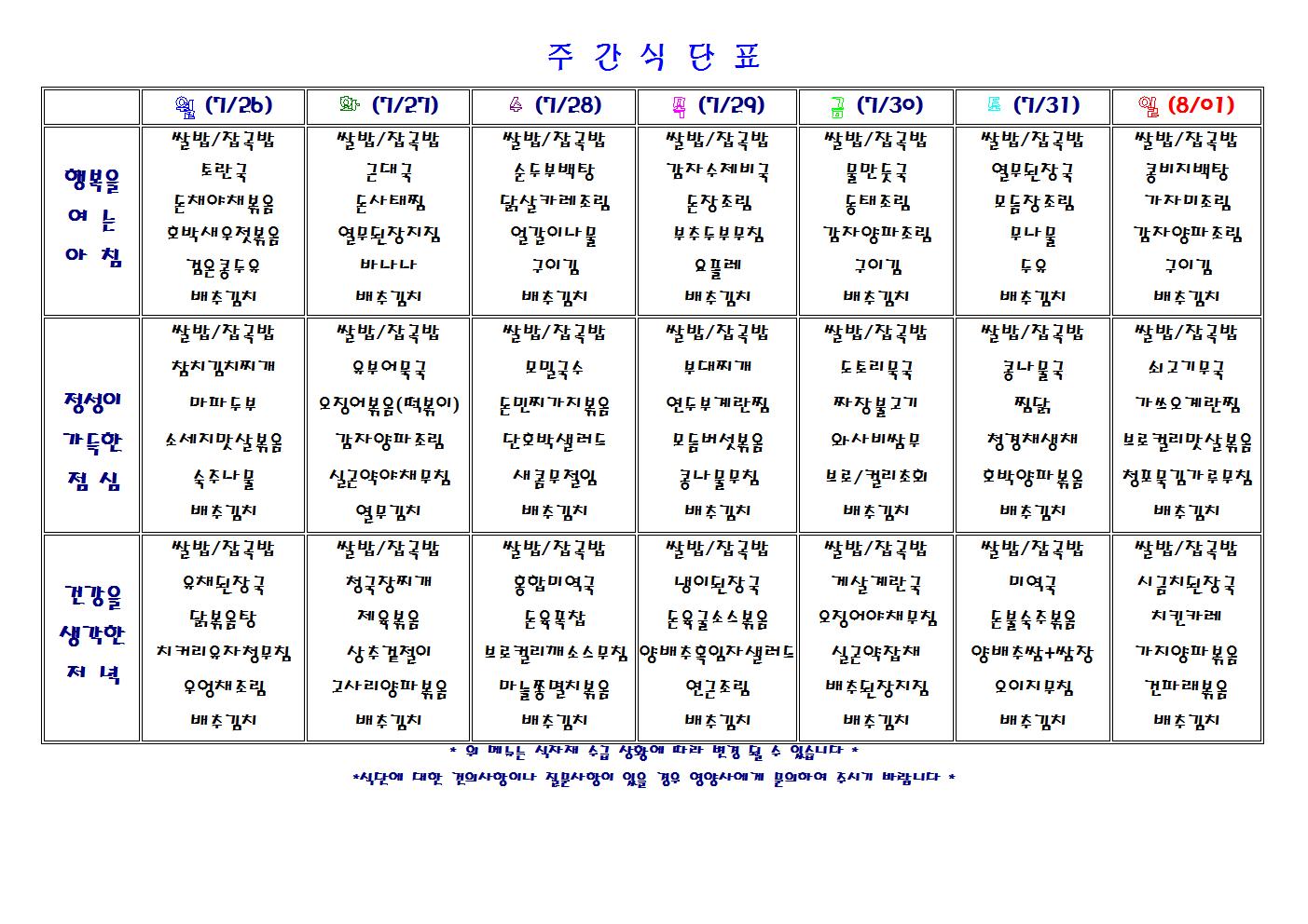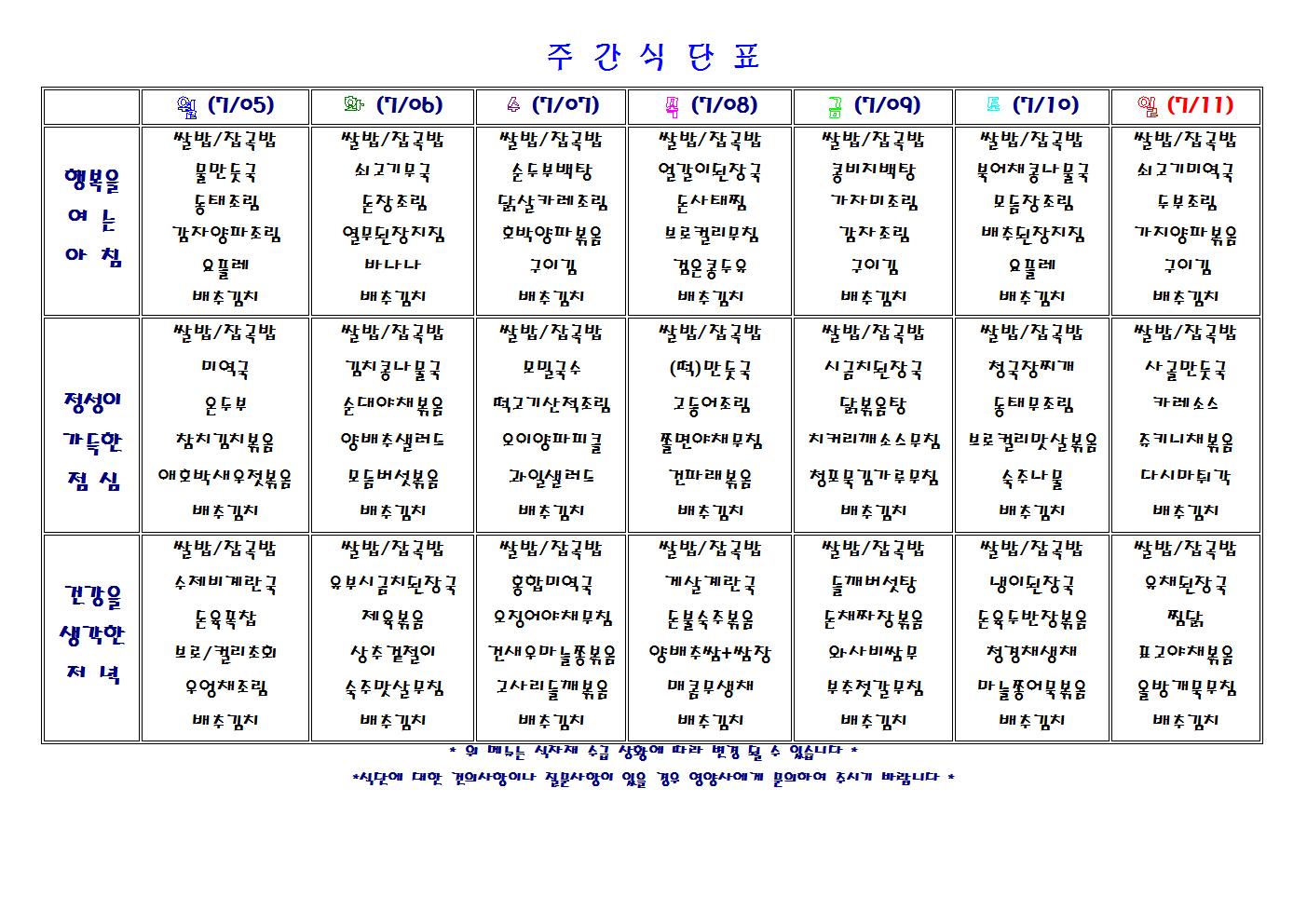 주간 식단표