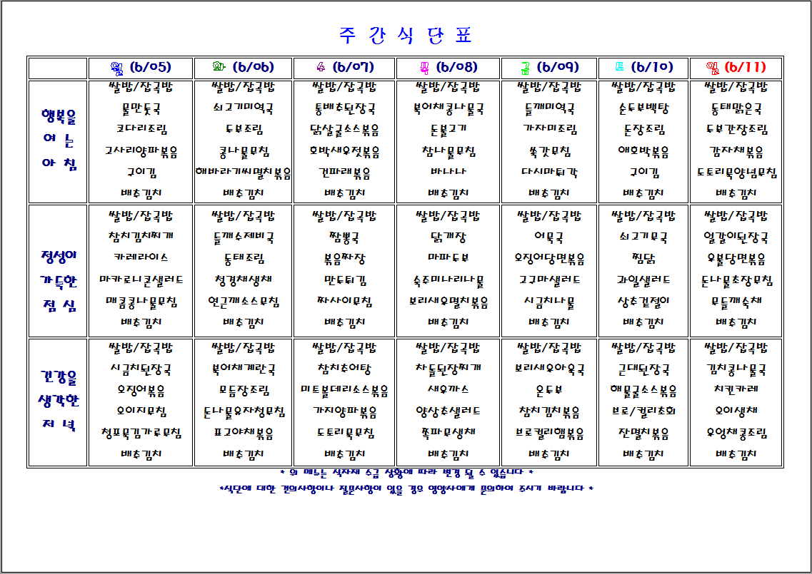 별내요양병원 2017.6.5~6.11 식단표 입니다.
